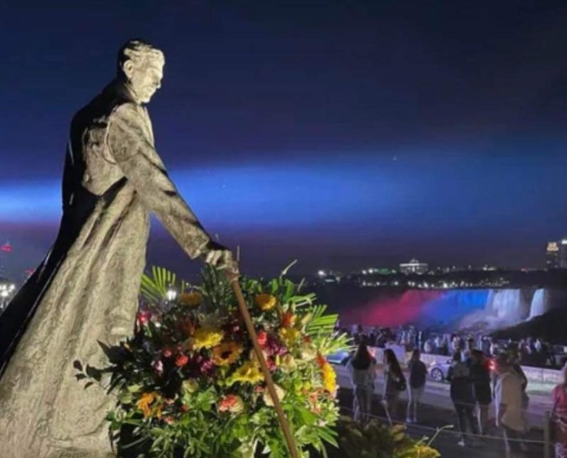 After so many years and this 10th of July 2023 to remember and honour Nikola Tesla, Niagara Falls Hydro Power Station lighted the water with Serbian Flag colors.