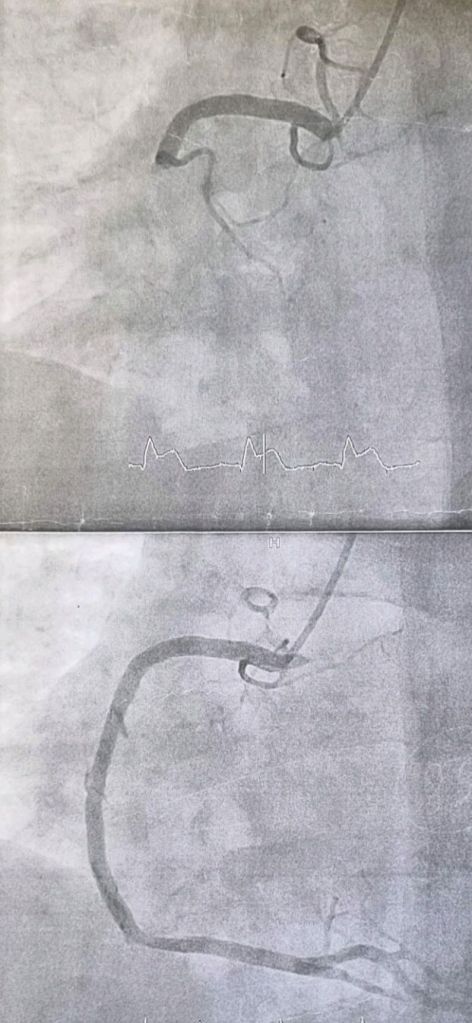 After some time the positioning of stent has happened and he was transfered to the hospital bed. He stayed for two nights in that hospital as doctor wanted to check how that ONE STENT worked and if the ARTERY was cured.