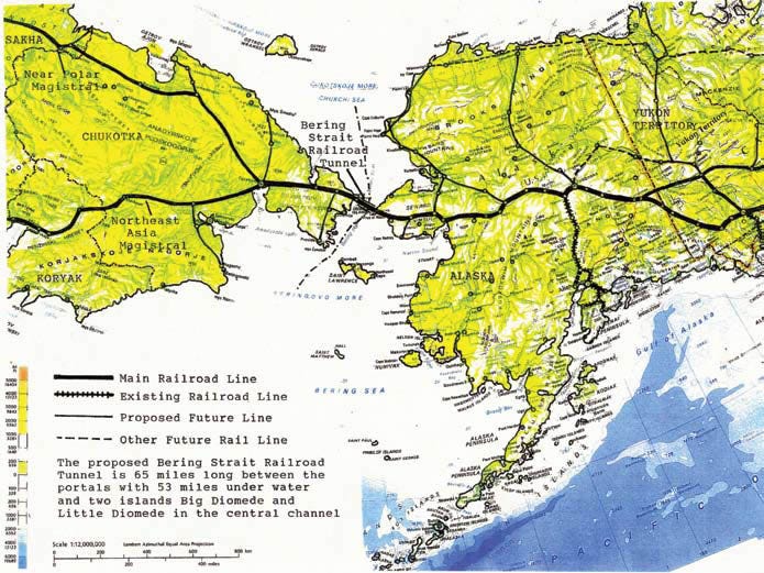 And on the Russian side, a connection to Yakutsk, to the south, and to the Trans-Siberian and Baikal-Amur Mainline. . . . And also, connections to the west of Russia. During Stalin’s time, in the 1930s, studies were actually undertaken, routes laid out, of a near-polar mainline along the south shore of the Arctic Ocean in Russia, and also a line going to the southwest, to connect to the Trans-Siberian Railway. And Russia has always taken a greater interest in the connection through the Bering Strait than has the United States. And what we’ve seen ever since Harry Truman, is opposition.”